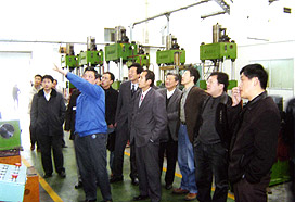 在姜董事長、陸總經理、鄭總工程師等的陪同下,專家教授參觀了生產車間。